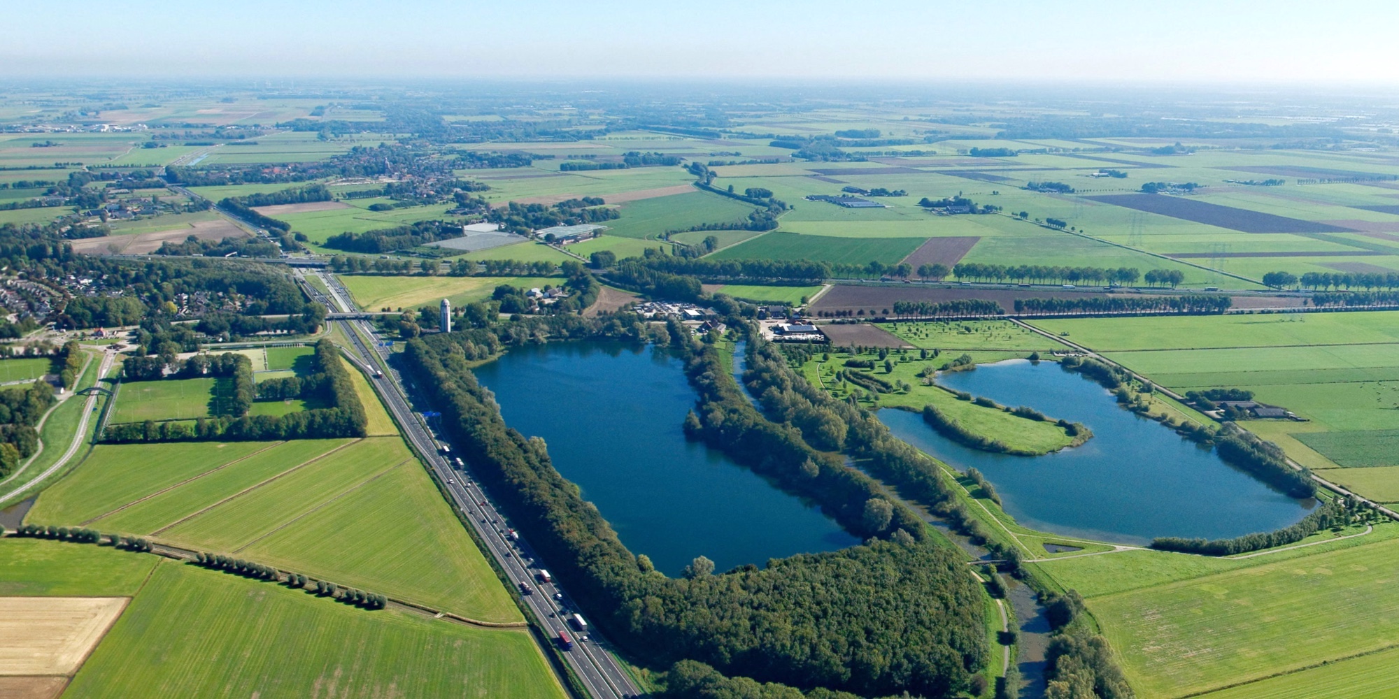 Links de Nionplas met linksboven de watertoren. Rechts de Put van Caron © Luchtfoto Rijkswaterstaat
