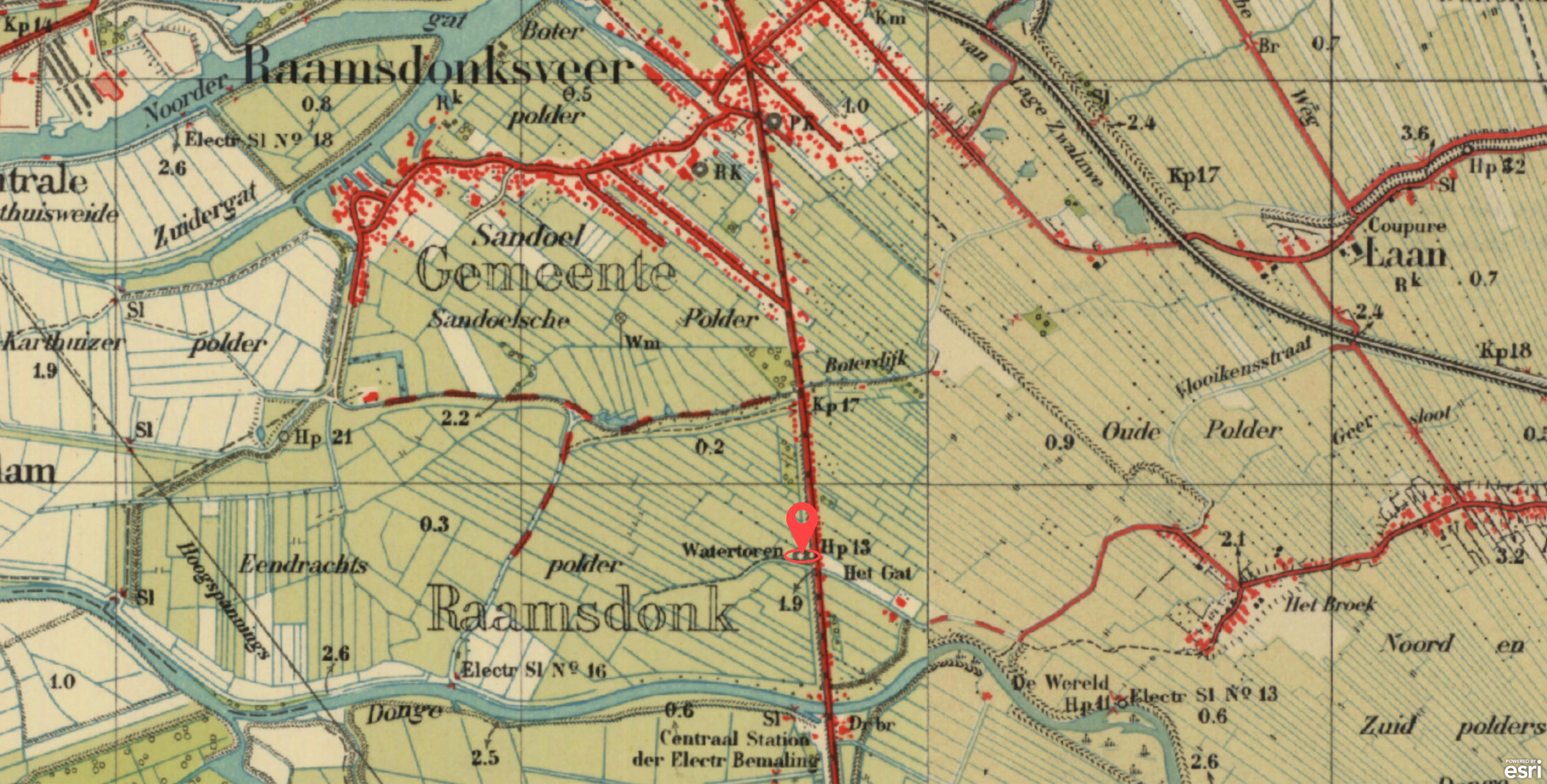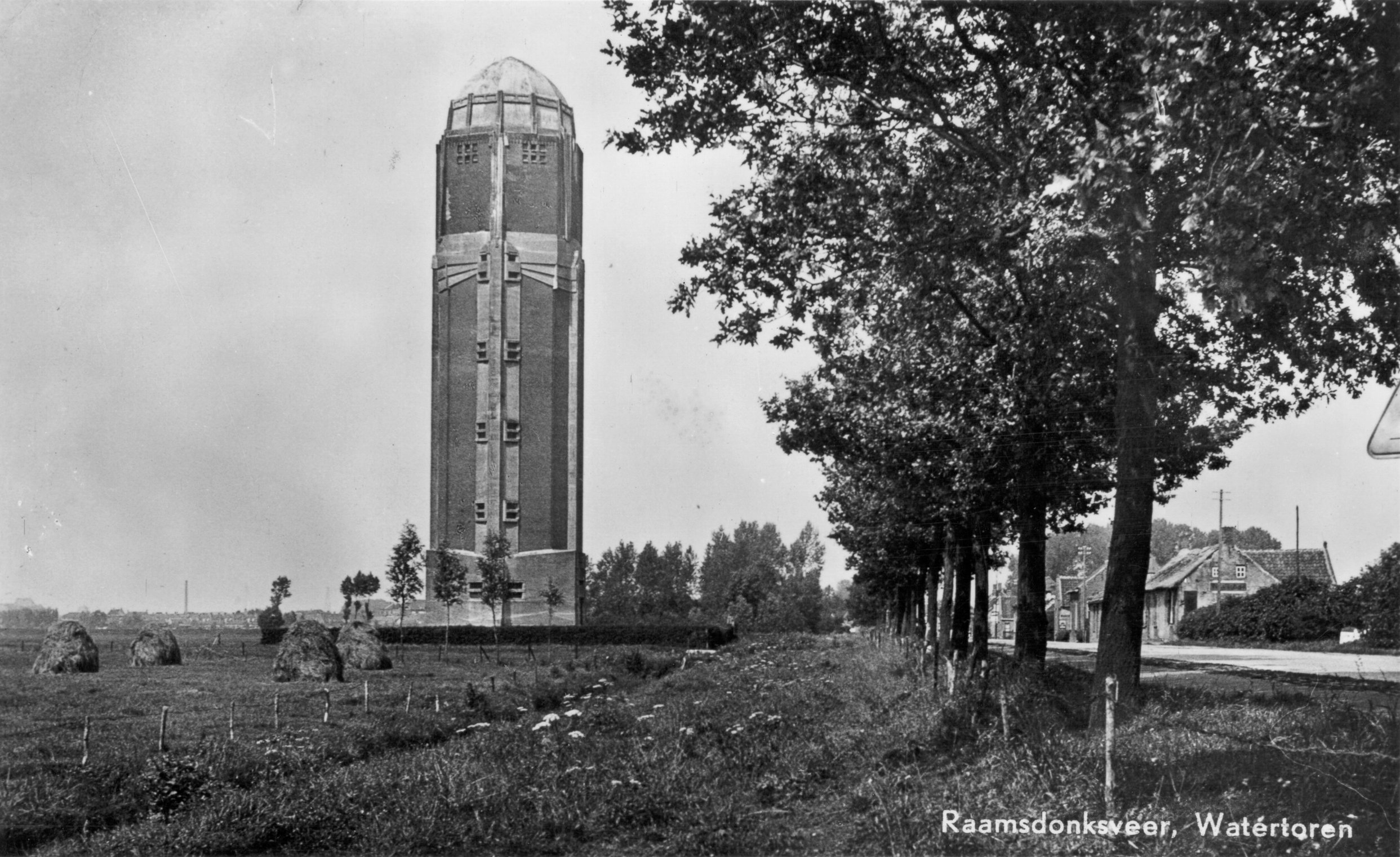 De watertoren als solitair baken in de polder (1935). © Kadaster Tijdreis